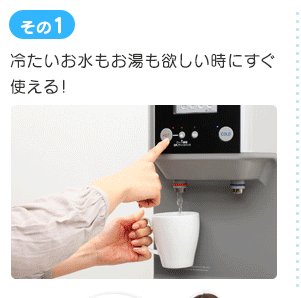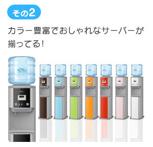 - 特徴: RO膜で磨いた安全な水、モンドセレクション受賞の美味しさ、子育て応援プランあり、選べるサーバーデザイン