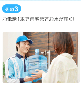 ウォーターサーバーがあれば、専門のスタッフが定期的にお水を自宅まで届けてくれます。重い荷物を持つ必要も、ペットボトルのゴミがかさばるストレスもありません。