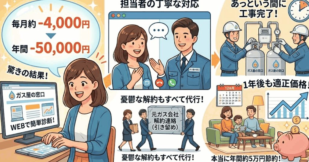- 「ガス会社変更はめんどくさい」は嘘!完全無料の代行サービスがある